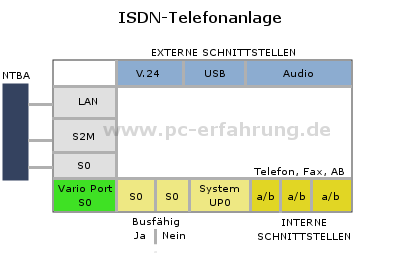 Wie der Name schon vermuten lässt, wird beim Anlagenanschluss eine Telefonanlage (Nebenstelle) zwischengeschaltet. Die Telefonanlage übernimmt die Verwaltung der ISDN-Geräte.