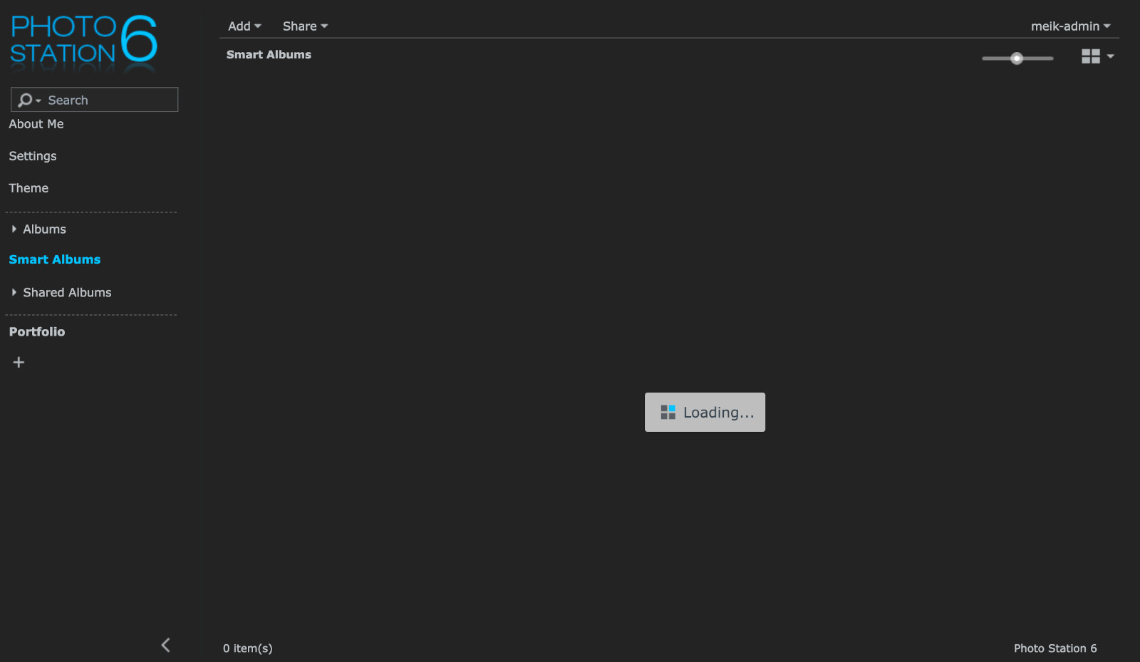 Die smarten Alben der Photo Station 6 sind sehr praktisch. Anhand bestimmter Filter werden eine Auswahl an Videos und Bilder angezeigt. Leider existiert das Problem, dass die Smart Albums unter bestimmten Umständen nicht geladen werden. Man sieht lediglich den Ladebalken "Loading...".