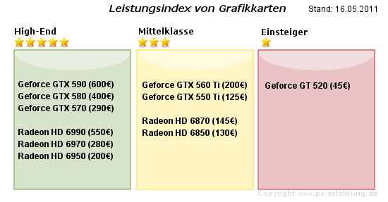 Der potentielle Käufer hat also die Wahl, ob ihm das Geld für die Mehrleistung Wert ist oder ob er zur preisgünstigeren Geforce GTX 570 greift. Schließlich kostet die Geforce GTX 580 rund 100 Euro mehr (Stand 16.05.2011).